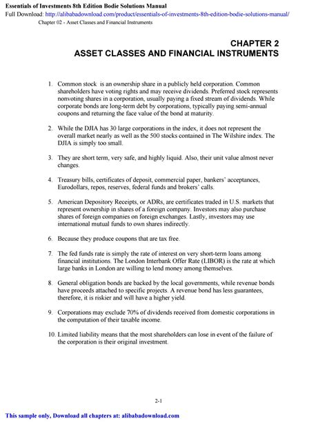 Download ESSENTIALS OF INVESTMENTS 8TH EDITION SOLUTIONS MANUAL FREE Doc ManyBooks